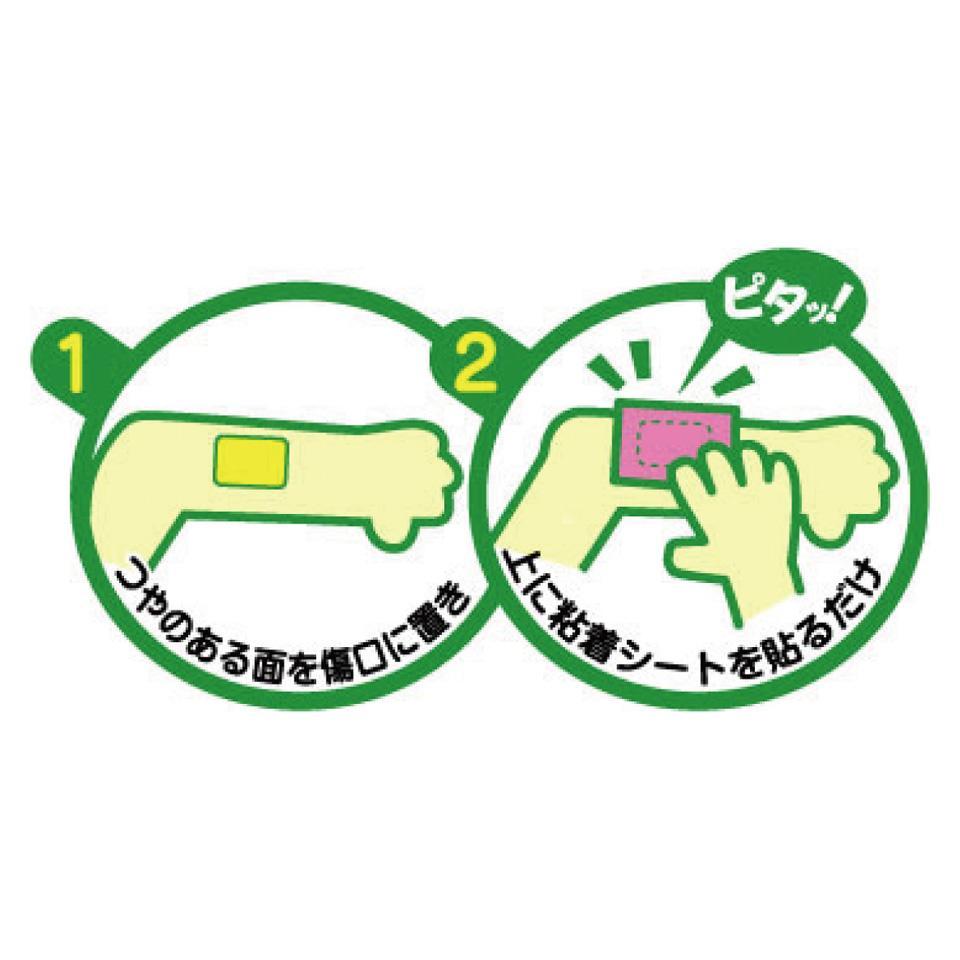 優れた殺菌力を持つ殺菌消毒液「アクリノール」が傷口を殺菌消毒し化膿を防ぎます。傷口につかない特殊フィルム付ガーゼを使用しているので、傷口にガーゼが付着することなく、交換も容易で、はがす時痛くありません。