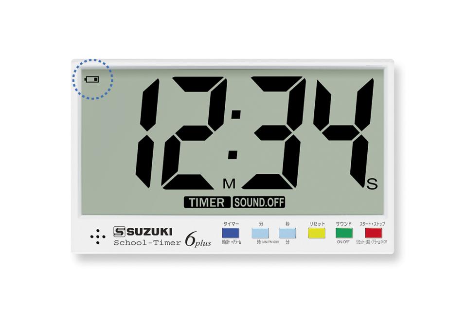 大きな画面で人気のスクールタイマーに、電力不足による誤動作や突然の電池切れを防ぐ「電池交換お知らせマーク」が新搭載!