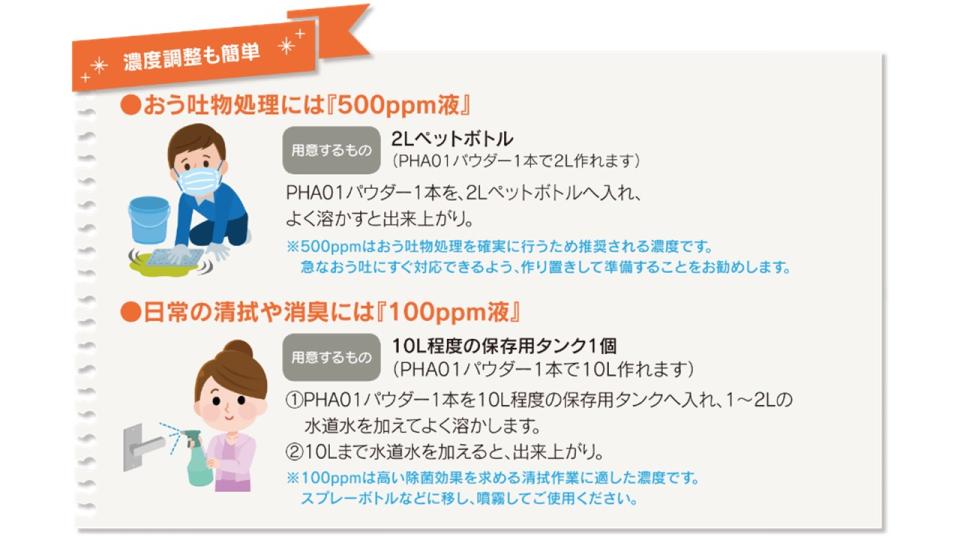 ※500ppmはおう吐物処理を確実に行うために推奨される濃度です。