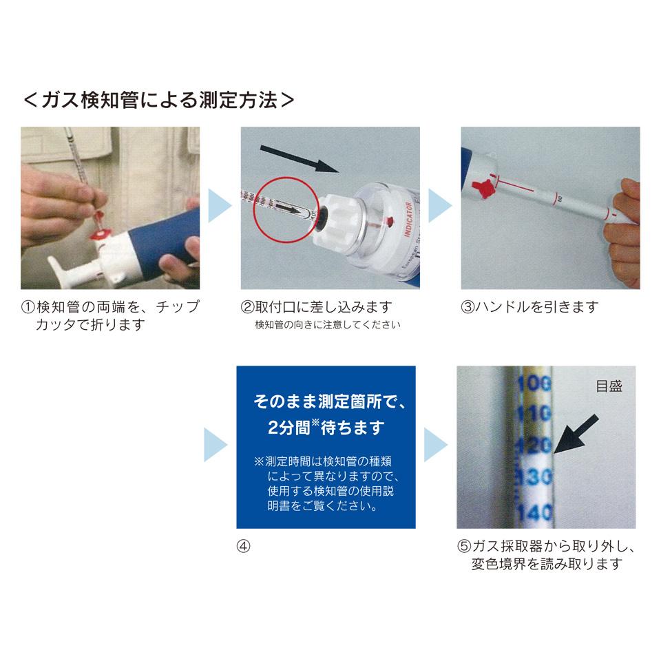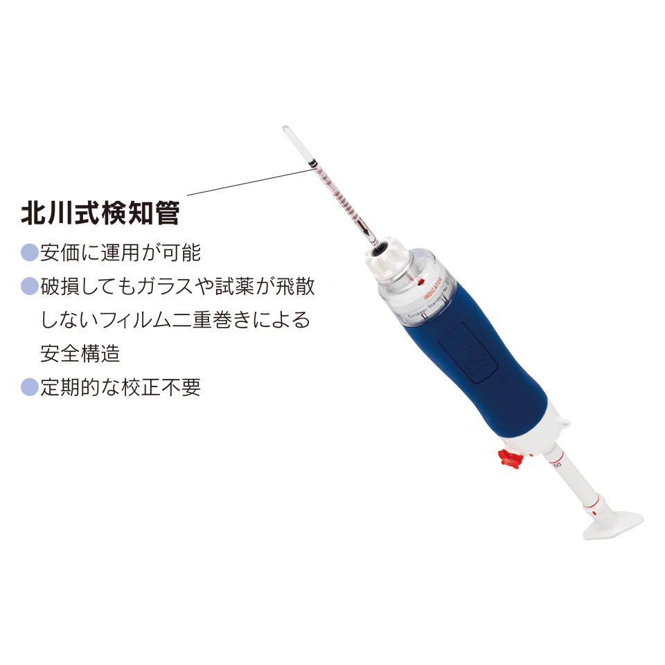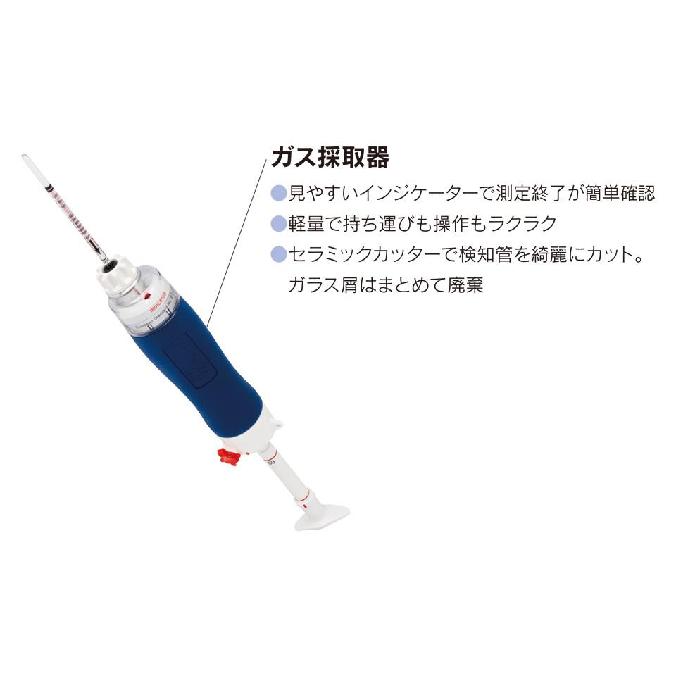 ガス検知管は、ガス採取器とセットで使用し、手軽に誰でもその場でガス濃度測定できる簡易測定キットです。