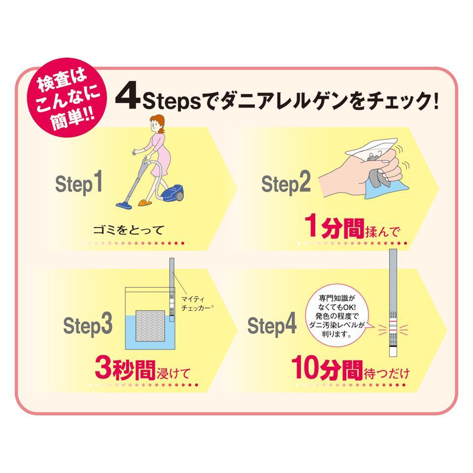 セット内容①マイティチェッカー……5本②ゴミ取り袋………………5枚③チャック付ビニール袋…5枚④抽出液………………………5本⑤取扱説明書(判定用色見本)…1枚