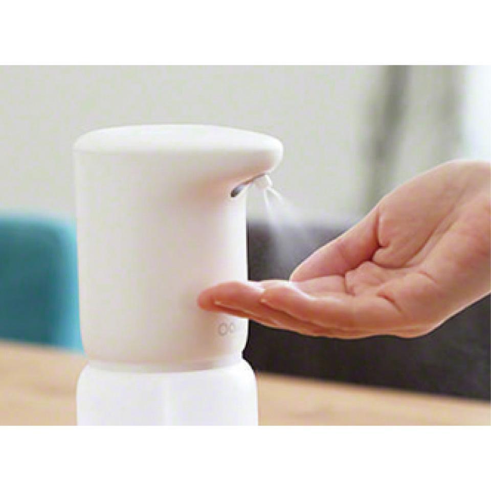 手をかざすだけで「シュッ」とアルコールが噴出して手指消毒が完了します