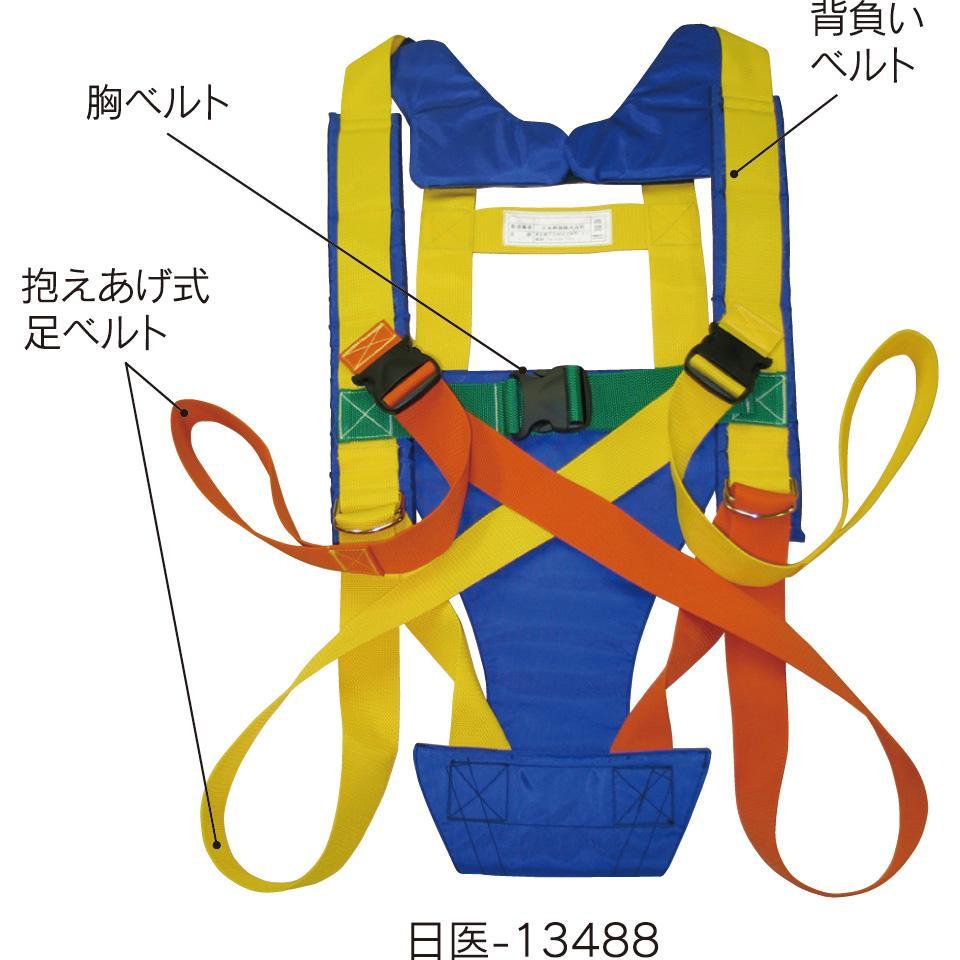 両足太ももが抱えられる便利なストラップベルト採用! 装着がしやすいように、ベルトが色分けされています。