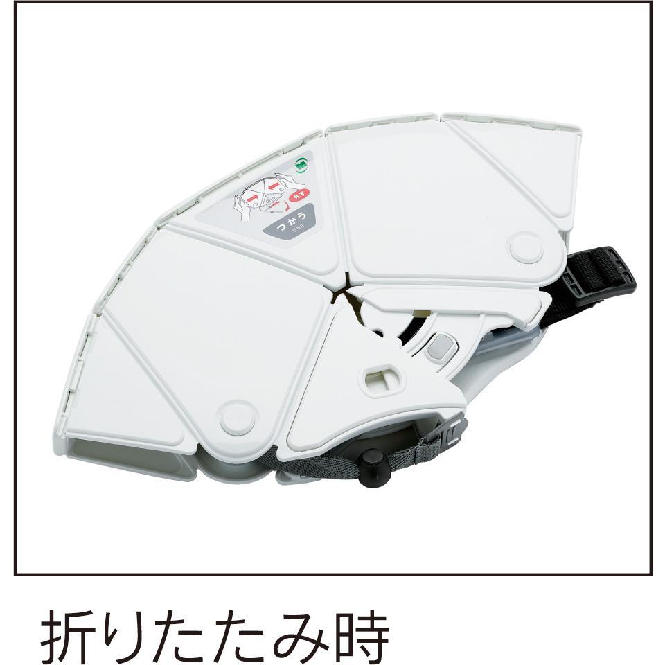 ●サイズ/収納時:幅約355mm・高さ約203mm/奥行約33mm、使用時:前後約285mm・左右 約208mm・高さ約150mm、パッケージ:311×223.5×44mm●重量/420g●材質/帽体:PP、中央ジョイント部:ABS、サイドロック部:PC●付属品/専用収納袋