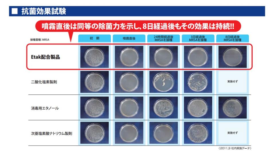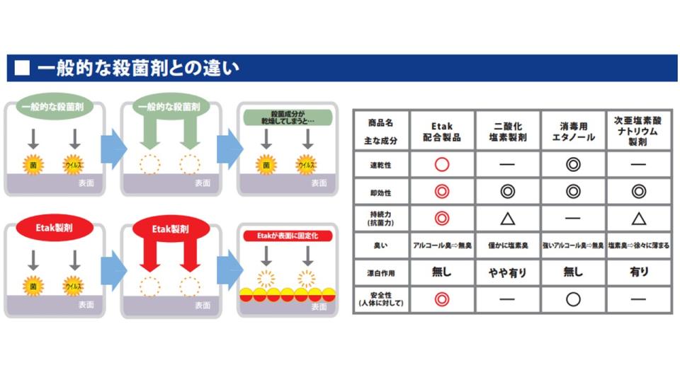 日本発のEtakは、除菌効果が持続する特殊な製剤です