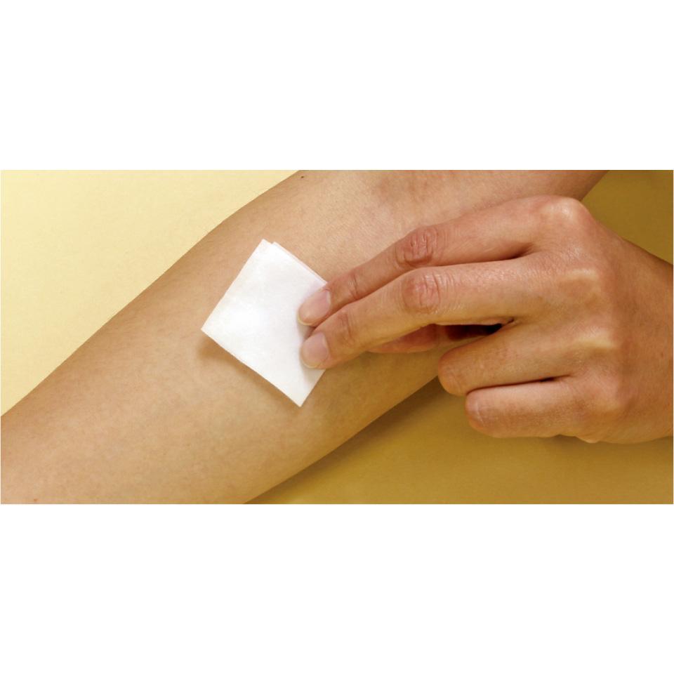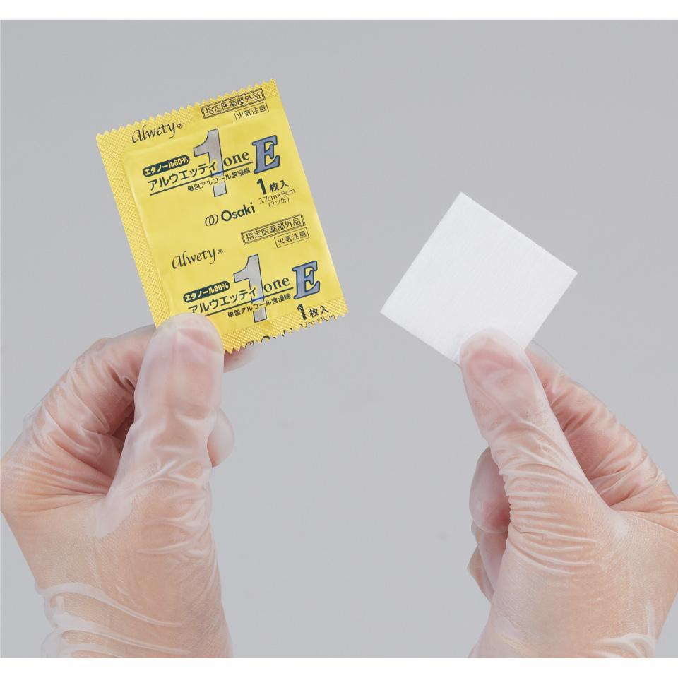 手指・皮膚の消毒に便利な脱脂綿タイプの単包エタノール80%含浸綿